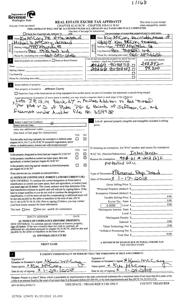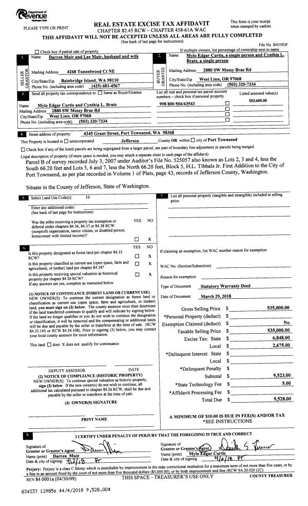 | Mailing Address: | 55 OAK SHORE DR PORT TOWNSEND, WA 98368-9534 | % Ownership: | 100.0000000000% |