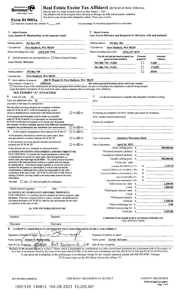 | 3 | 07/28/2023 | SWD | Statutory Warranty Deed | PETER S IWATA TRUSTEE | MICHAEL S TODD | | | $520,000.00 | 141300 | |