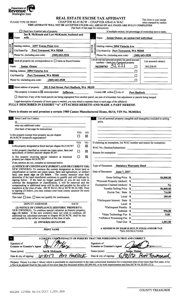 | 5 | 06/09/1993 | SWD | Statutory Warranty Deed | MARONEY, NANCY TRUST | GRABLE, ROBERT/IRENE | 0 | 0 | $22,000.00 | 71462 | 0 |