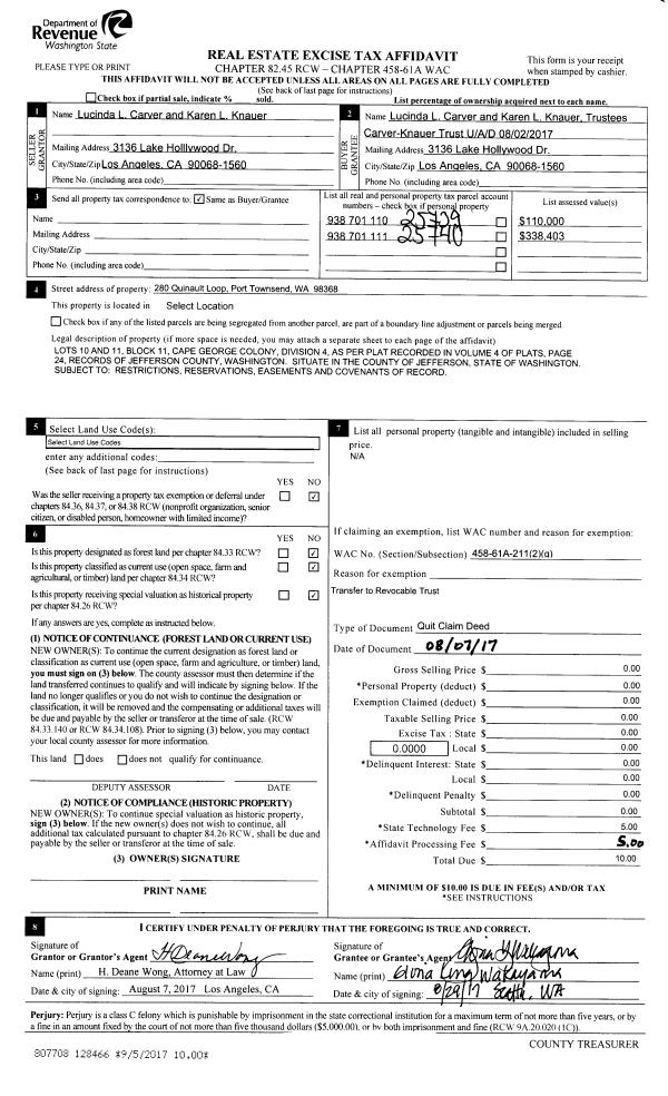 | 1 | 12/18/2023 | QCD | Quit Claim Deed | MARGOT S LOUTHEN | MARGOT SHEA LOUTHEN LIVING TRUST | | | | 142025 | |