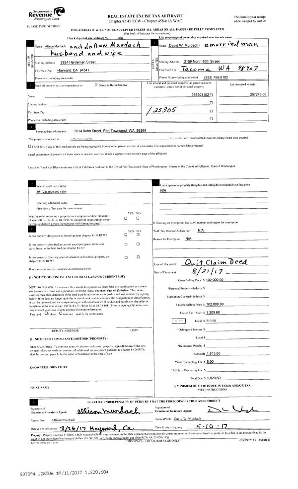 | Mailing Address: | 665 PINECREST DRIVE PORT TOWNSEND, WA 98368 | % Ownership: | 100.0000000000% |