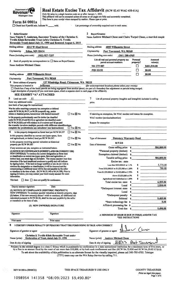 | Mailing Address: | 1717 KALA PT DR PORT TOWNSEND, WA 98368 | % Ownership: | 100.0000000000% |