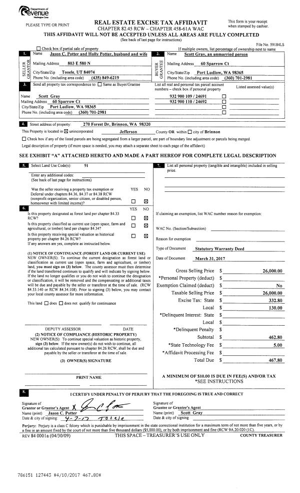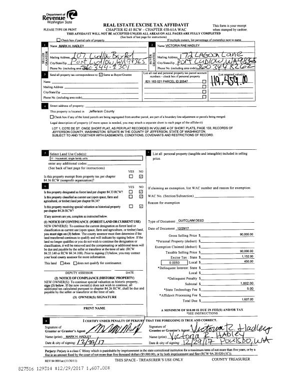 | Mailing Address: | 40 CEDARVIEW DR PORT TOWNSEND, WA 98368-2502 | % Ownership: | 100.0000000000% |
