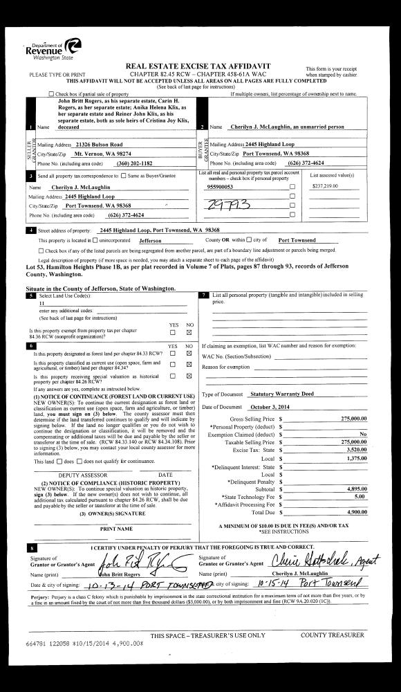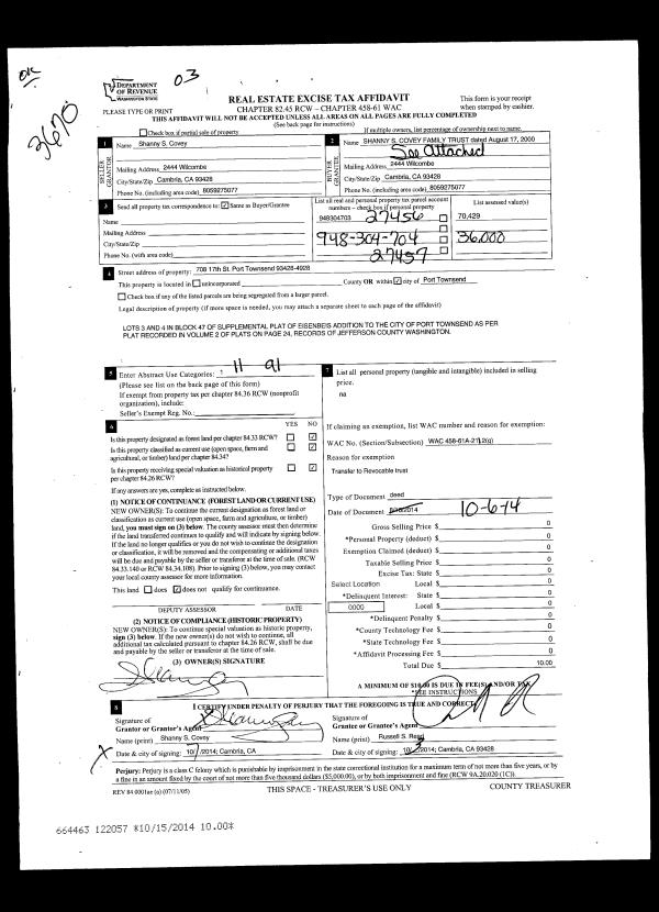 | Mailing Address: | 194 CEDARVIEW DR PORT TOWNSEND, WA 98368-9527 | % Ownership: | 100.0000000000% |