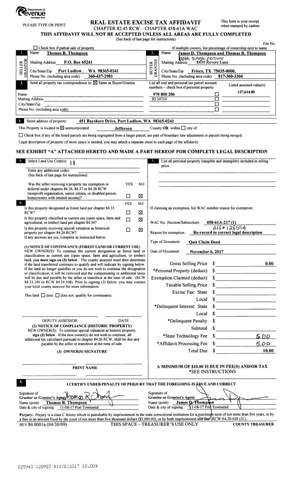 | 1 | 9652-4165S | Kala Point Village Timeshares 1/12 Int in Unit | 0.0000 | 0.00 | 0.00 | 0.00 | 1.00 | $500 | $0 |