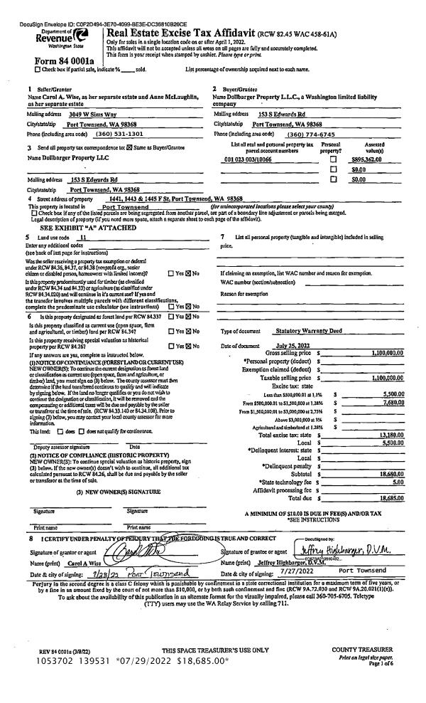 | 1 | 08/15/2022 | QCD | Quit Claim Deed | GREGORY M J LAMBERT TRUSTE | JULIE SEABORN & MICHAEL HARDEN | | | | 139691 | |