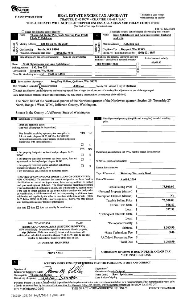 | 2 | 01/06/2016 | SWD | Statutory Warranty Deed | GLORY A HIKES | LINDA B FLETCHER | | | $1,500.00 | 124741 | |
