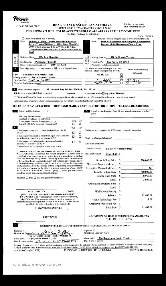 | 4 | 02/07/1994 | SWD | Statutory Warranty Deed | BRONSON, JEROME G | CAMERON, DAN | 0 | 0 | $6,000.00 | 73351 | 0 |