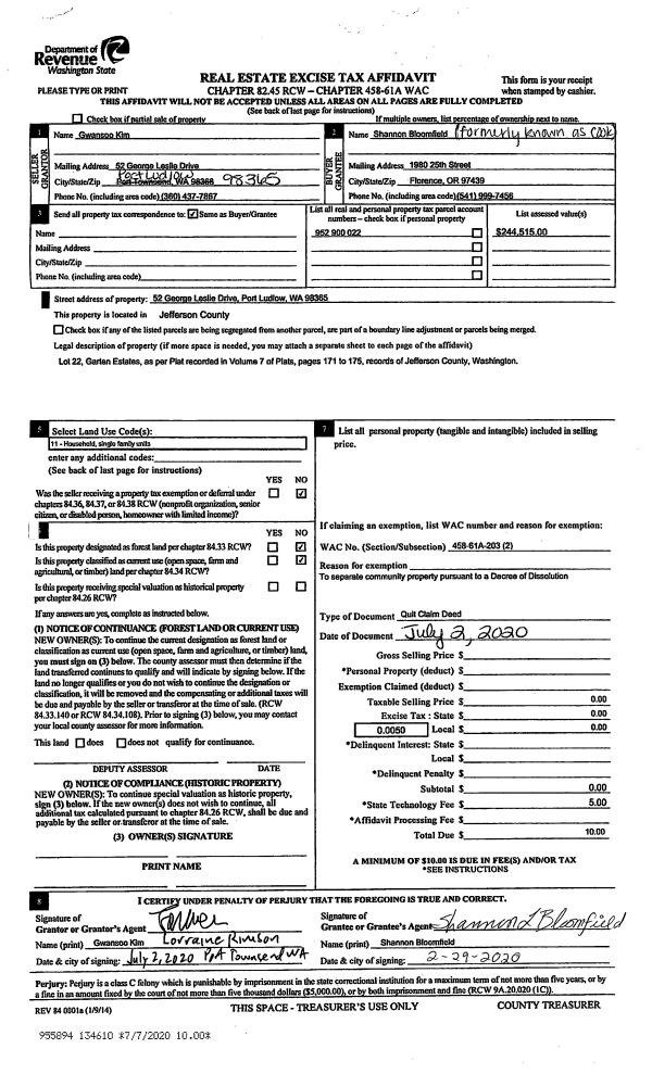 | 3 | 05/03/2019 | DILF | Deed in Lieu of Foreclosure | JO ANN FISCHER | KALA POINT VILLAGE ASSOCIATION | | | | 132517 | |