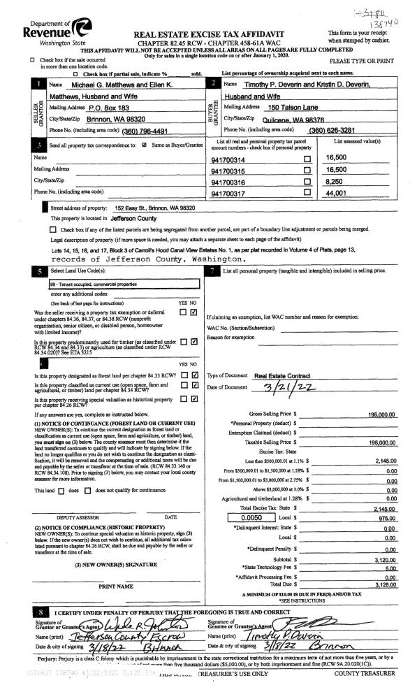| 1 | 08/18/2022 | SWD | Statutory Warranty Deed | JANET KAPLAR | ELISE & LENNART RAINER | | | $900.00 | 139745 | |