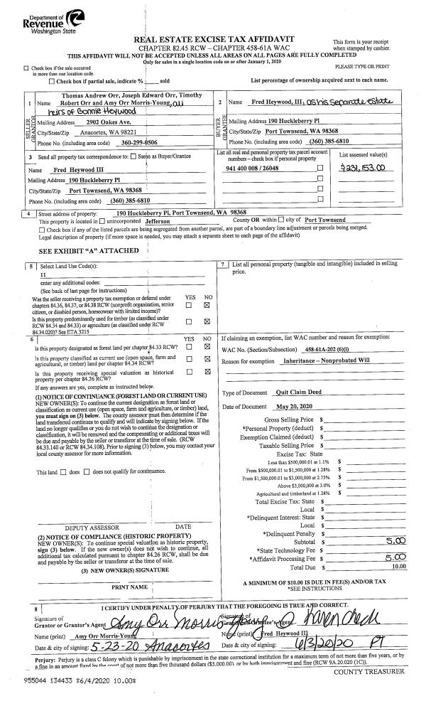 | 2 | 02/02/2021 | QCD | Quit Claim Deed | STEPHEN N YATES | SHALYN R ANDERSON | | | | 136270 | |