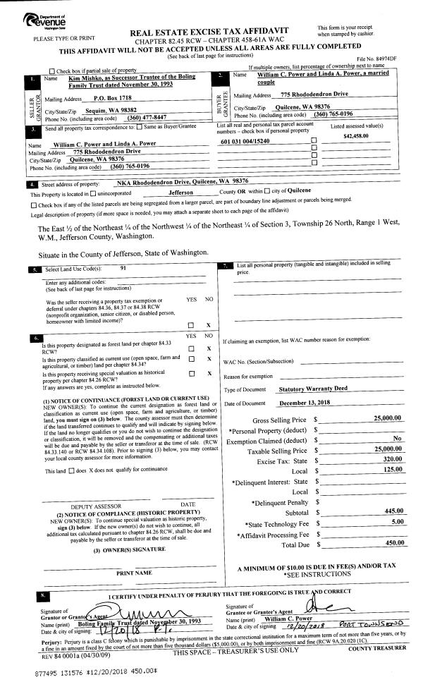 | 1 | 05/11/2019 | SWD | Statutory Warranty Deed | KALA POINT VILLAGE ASSOCIATION | CHRISTOPHER E & SHERI L STRAUB | | | $300.00 | 132296 | |