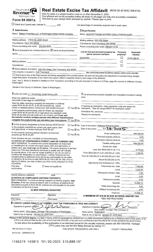| 2 | 04/08/2025 | PRD | Personal Representatives Deed | JACQUELINE D BECKLUND | JACQUELINE D BECKLUND LIVING TRUST | | | | 144284 | |