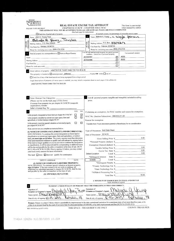 | 2 | 03/17/2015 | DILF | Deed in Lieu of Foreclosure | BRIAN L WHITESIDE TRTE | KALA POINT VILLAGE ASSOCIATION | | | | 122887 | |