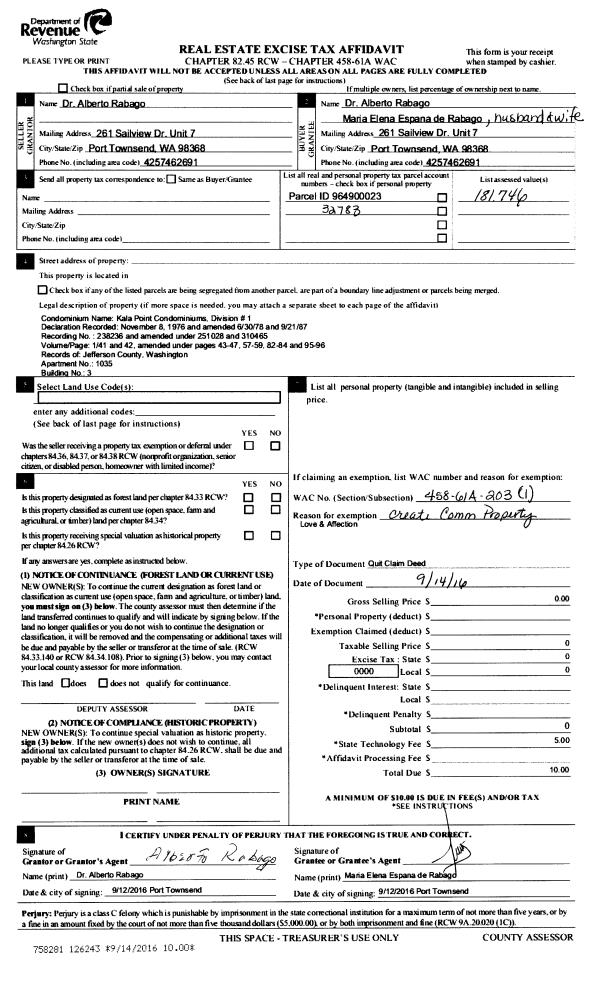 | 2 | 04/17/2017 | SWD | Statutory Warranty Deed | KALA POINT VILLAGE ASSOCIATION | SHIRLEY A WIELAND | | | $250.00 | 127480 | |