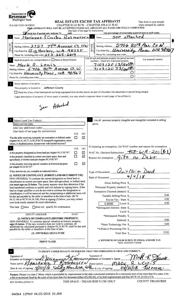 | 1 | 09/19/2018 | SWD | Statutory Warranty Deed | RICHARD F & CATHERINE F WILLIAMS | EVAN MATSUMOTO | | | $475.00 | 131084 | |