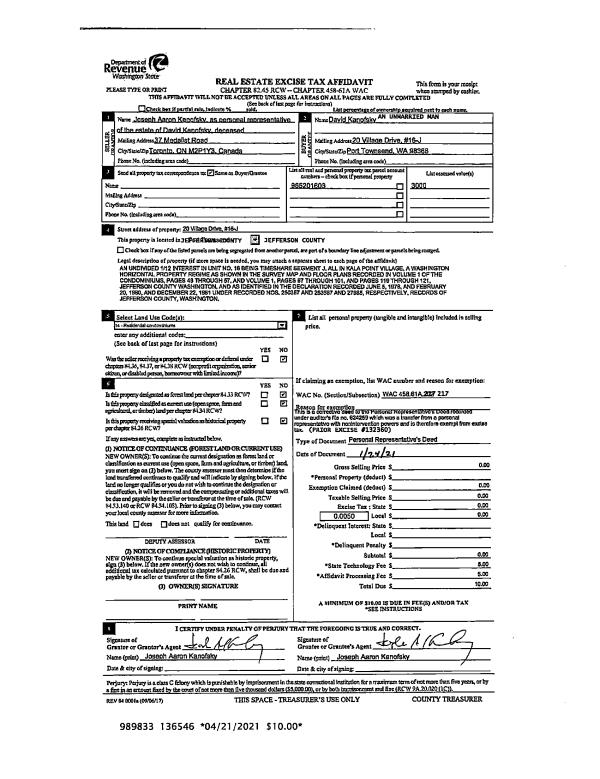 | 3 | 12/12/2019 | PRD | Personal Representatives Deed | JASON B COOPER | MARION S COOPER | | | | 133656 | |