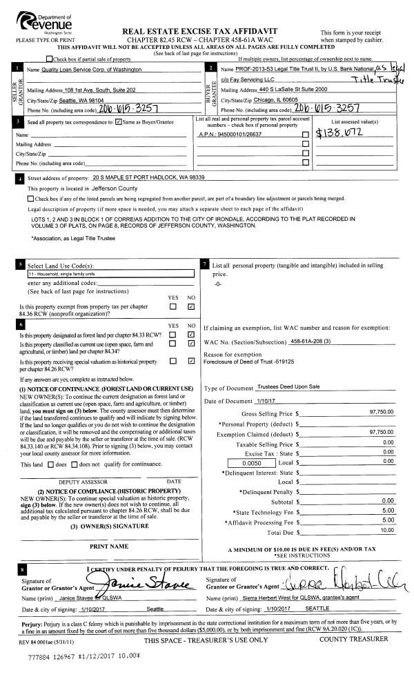| 3 | 03/20/2010 | SWD | Statutory Warranty Deed | KALA BLUFFS LLC, A WASHIN | ANDERSON, JANET F | 0 | 0 | $240,000.00 | 114154 | 0 |