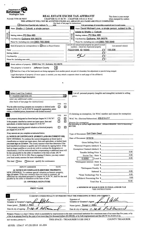 | 3 | 02/19/2019 | QCD | Quit Claim Deed | JAMES H THOMAS | JACOB E THOMAS | | | | 131884 | |