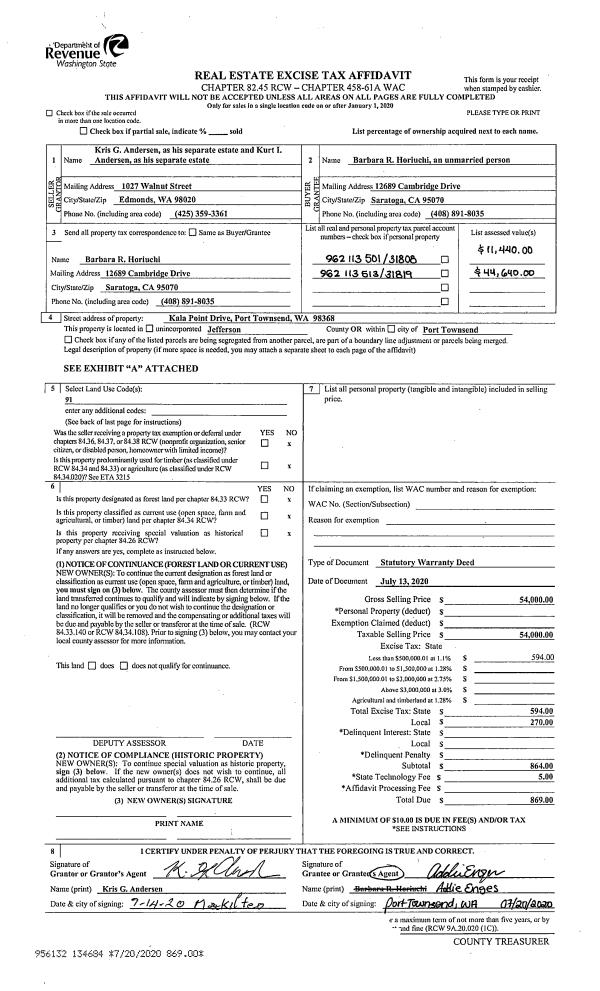 | 2 | 10/28/2020 | SWD | Statutory Warranty Deed | JACOB E THOMAS | MICHAEL A & LAURA M BISKUP | | | $12,000.00 | 135457 | |