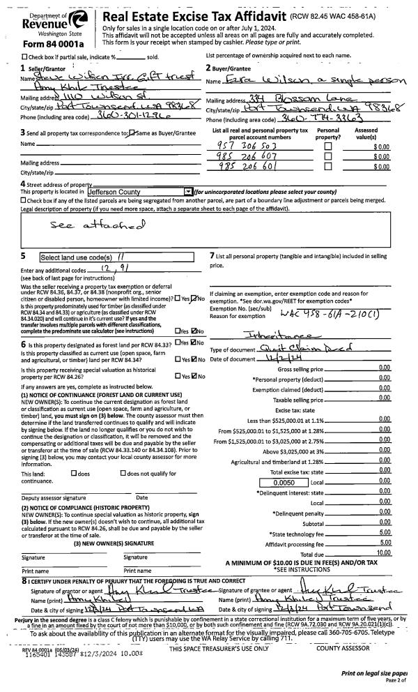 | Mailing Address: | 250 MADISON ST STE 1 PORT TOWNSEND, WA 98368-5738 | % Ownership: | 100.0000000000% |