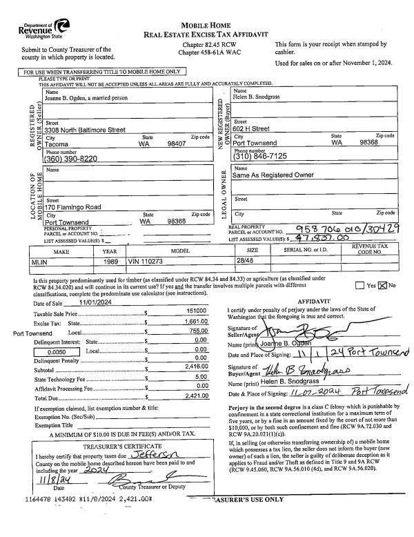 | 2 | 07/09/2019 | SWD | Statutory Warranty Deed | PAUL & MARY HARROLD REVOCABLE TRUST | LINDA SCHICKER | | | $610,000.00 | 132733 | |