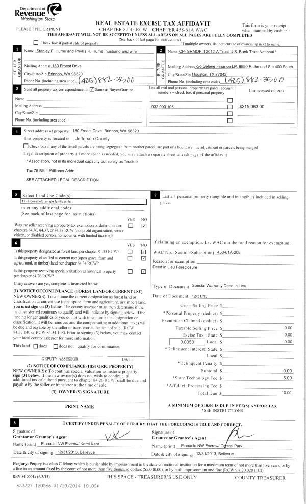 | 2 | 02/04/2015 | SWD | Statutory Warranty Deed | DUANE CLAYTON ZEITS | PATRICK A RUBIDA | | | $205,500.00 | 122769 | |