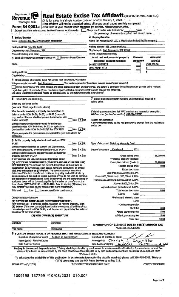 | Mailing Address: | 987 CASS ST PORT TOWNSEND, WA 98368-8000 | % Ownership: | 100.0000000000% |