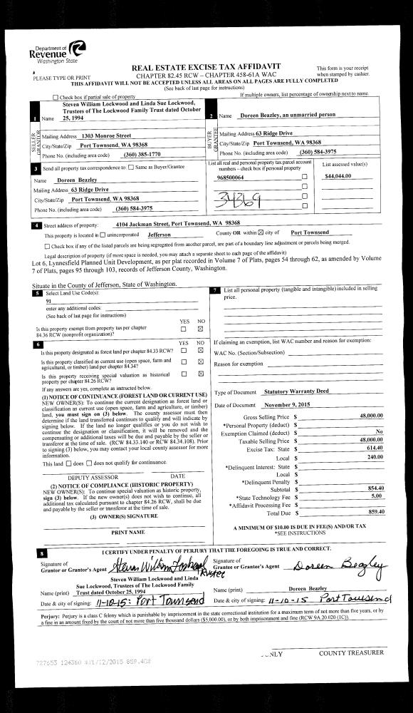 | Mailing Address: | 825 CASS ST PORT TOWNSEND, WA 98368-8021 | % Ownership: | 100.0000000000% |