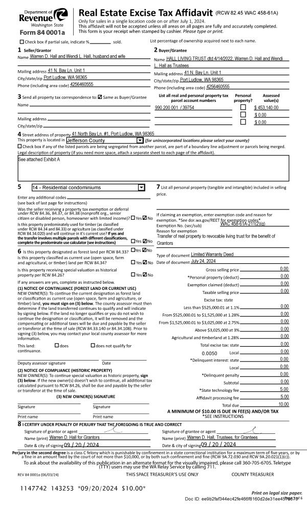 | 1 | 09/19/2025 | SWD | Statutory Warranty Deed | FAIRBANK REVOCABLE LIVING TRUST | MEREDITH A SCHREIBER | | | $795,000.00 | 145004 | |