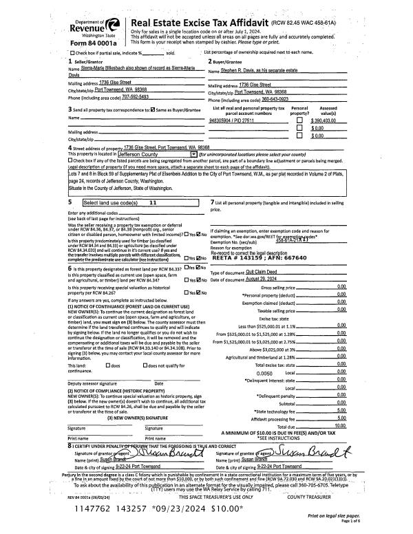 | Mailing Address: | 1440 LAWRENCE ST PORT TOWNSEND, WA 98368 | % Ownership: | 100.0000000000% |