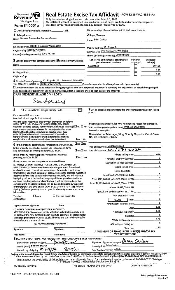 | Mailing Address: | CHARLENE M QUANDT 55 TERRACE DR PORT TOWNSEND, WA 98368-9567 | % Ownership: | 100.0000000000% |