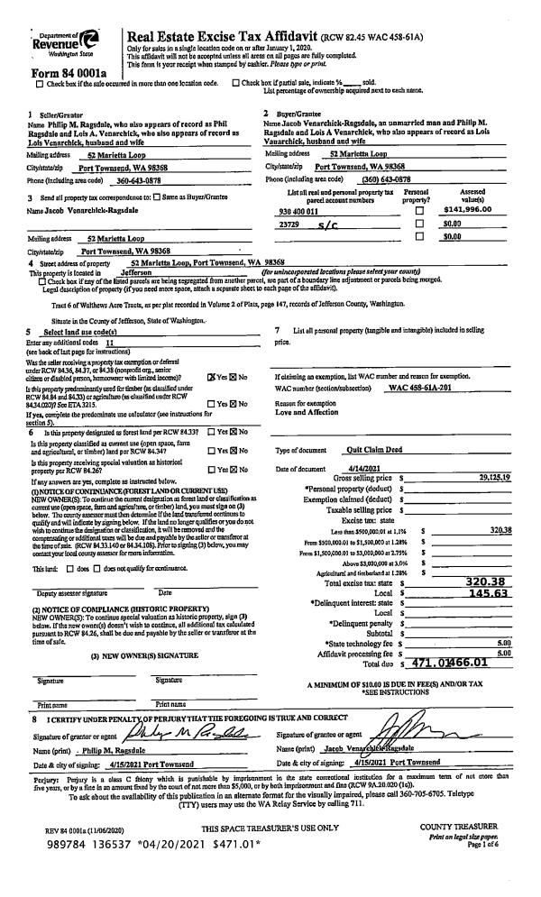 | Mailing Address: | PO BOX 549 PORT HADLOCK, WA 98339 | % Ownership: | 100.0000000000% |