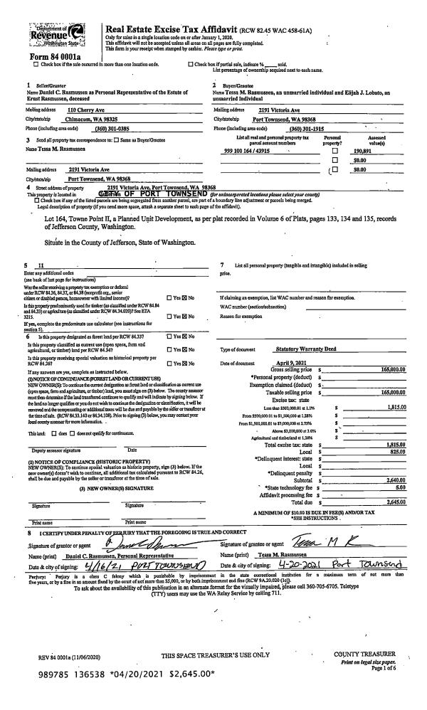 | 1 | 06/03/2021 | SWD | Statutory Warranty Deed | LAWSON HAMILTON FAMILY TRUST | GREGG & SHARON MAGNUSON | | | $1,194,000.00 | 136899 | |