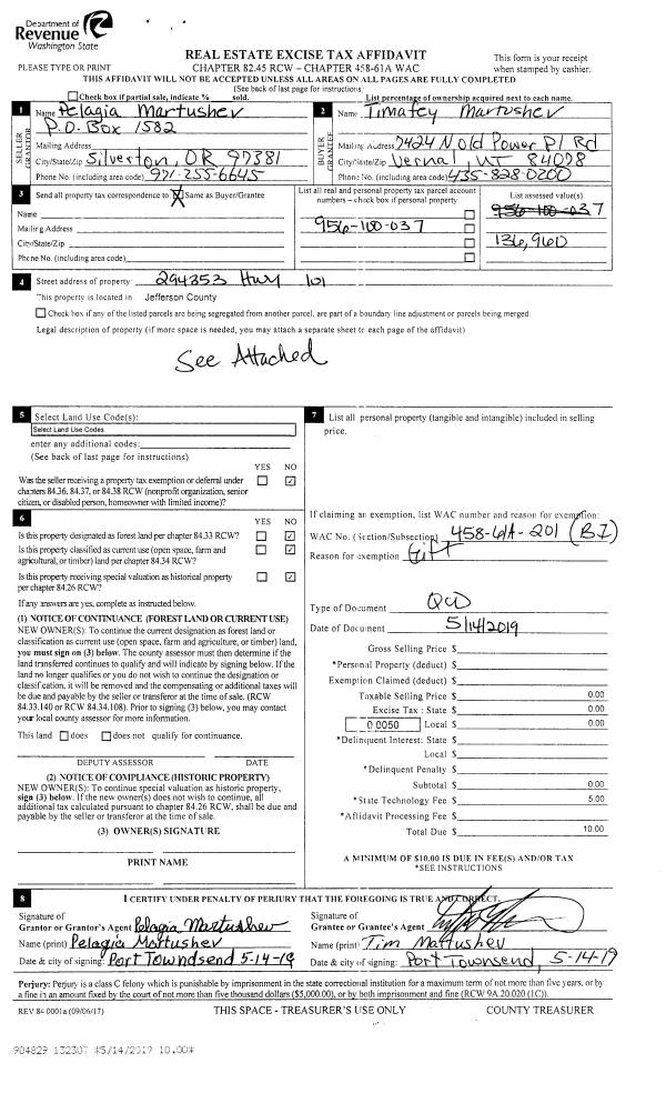 | Mailing Address: | 2330 ROSECRANS ST PORT TOWNSEND, WA 98368-6808 | % Ownership: | 100.0000000000% |