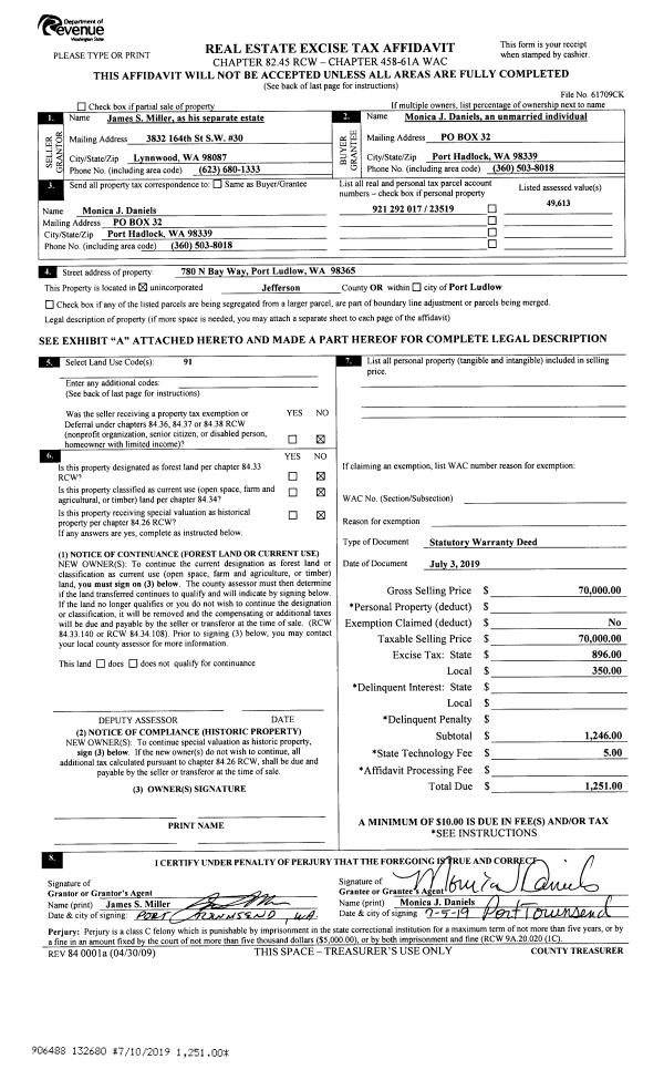 | 1 | 09/14/2017 | SWD | Statutory Warranty Deed | HOPPER FAMILY TRUST | JAN W & MARCEL M LAWSON | | | $25,500.00 | 128572 | |