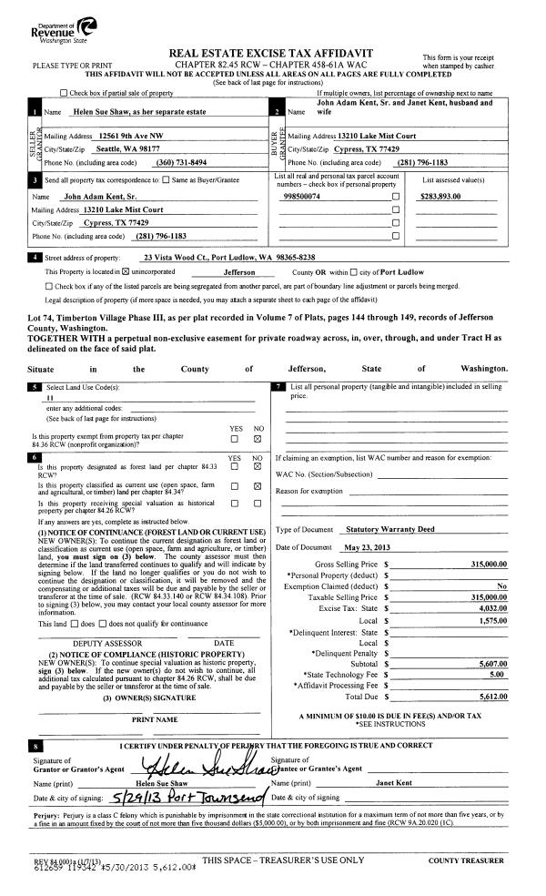 | 1 | 06/30/2014 | SWD | Statutory Warranty Deed | | | | | | 121446 | |