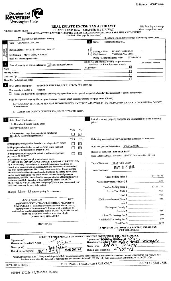 | 1 | 11/01/2018 | SWD | Statutory Warranty Deed | ARTHUR R MALFAIT | SHELLIE YARNELL | | | $175,000.00 | 131384 | |