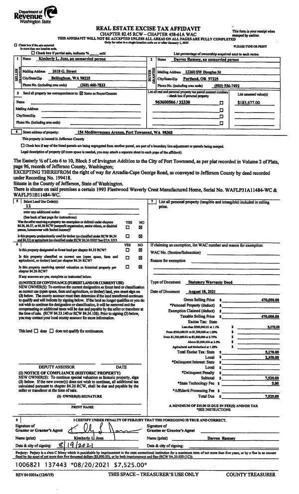 | Mailing Address: | 16206 460TH ST E EATONVILLE, WA 98328-7433 | % Ownership: | 100.0000000000% |
