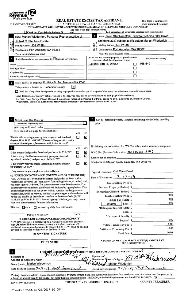 | Mailing Address: | NICHOLAS E FIELDS PO BOX 6 BRINNON, WA 98320-0006 | % Ownership: | 100.0000000000% |