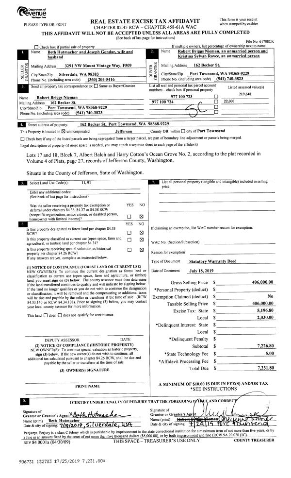 | 2 | 09/27/2021 | SWD | Statutory Warranty Deed | VICTORIA J SCHEEF | INGO A WIESSMER | | | $140,000.00 | 137762 | |