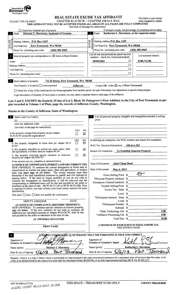 | 3 | 11/18/2013 | QCD | Quit Claim Deed | | | | | | 120312 | |