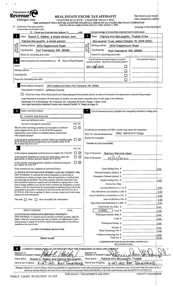 | Mailing Address: | 32 WELSH LN BRINNON, WA 98320-9565 | % Ownership: | 100.0000000000% |
