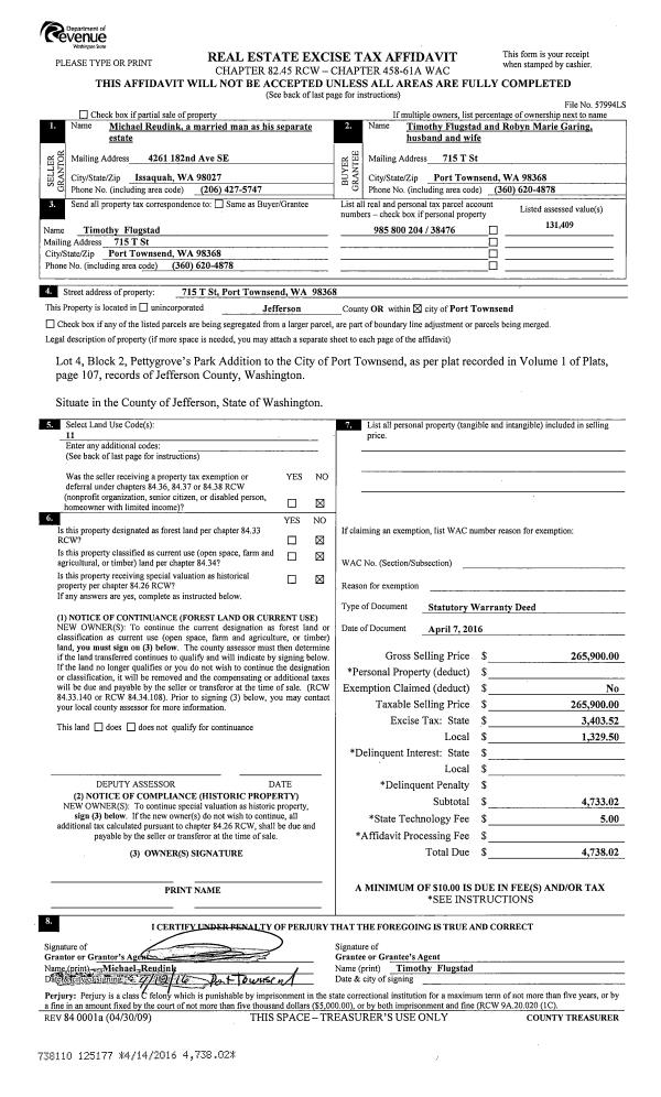 | Mailing Address: | 1101 BLAINE ST PORT TOWNSEND, WA 98368-6503 | % Ownership: | 100.0000000000% |
