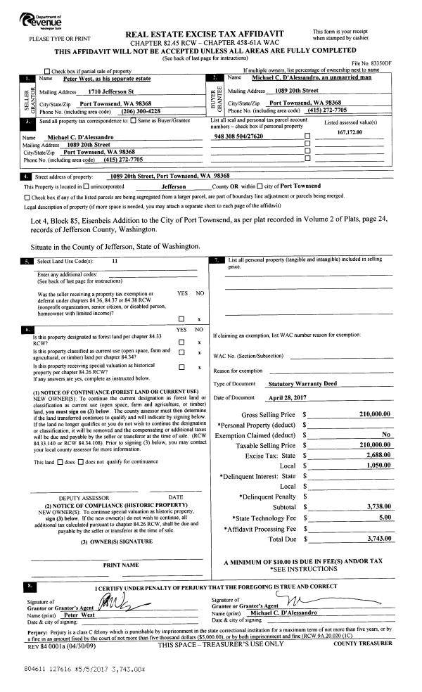 | Mailing Address: | 2870 SPRING ST PORT TOWNSEND, WA 98368-5960 | % Ownership: | 100.0000000000% |