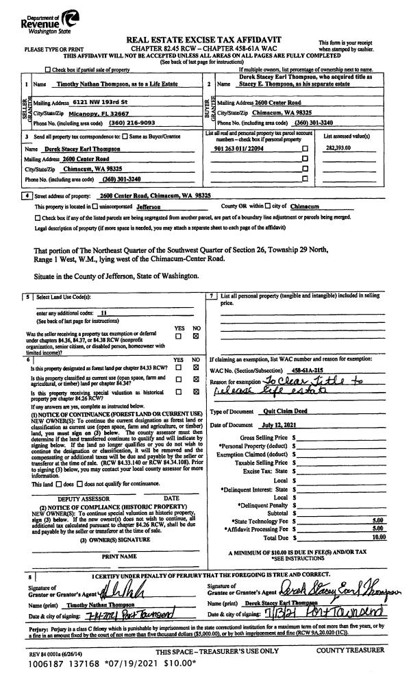 | Mailing Address: | 3407 EDDY ST PORT TOWNSEND, WA 98368-4713 | % Ownership: | 100.0000000000% |