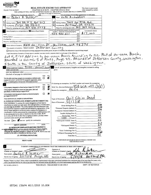 | 1 | 07/10/2019 | SWD | Statutory Warranty Deed | THOMAS R HIGGINS | PAMELA M GILBERT | | | $485,000.00 | 132746 | |