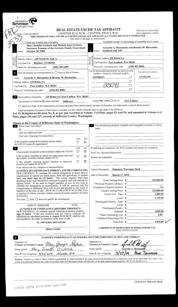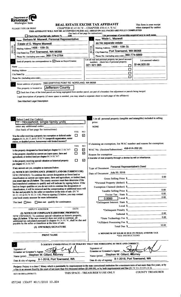 | Mailing Address: | 4095 HOLCOMB ST PORT TOWNSEND, WA 98368-2152 | % Ownership: | 100.0000000000% |