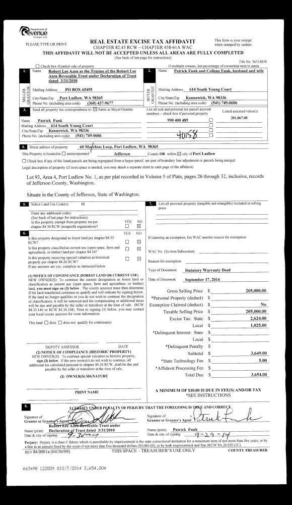 | Mailing Address: | 4207 JACKMAN ST PORT TOWNSEND, WA 98368-2123 | % Ownership: | 100.0000000000% |