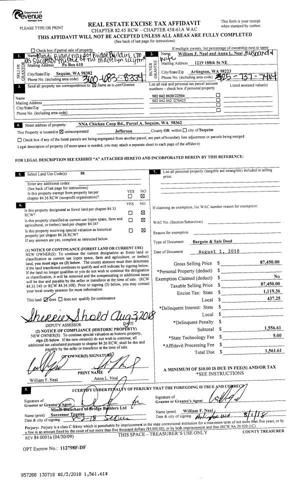 | Mailing Address: | 3958 JACKMAN ST PORT TOWNSEND, WA 98368-2159 | % Ownership: | 100.0000000000% |